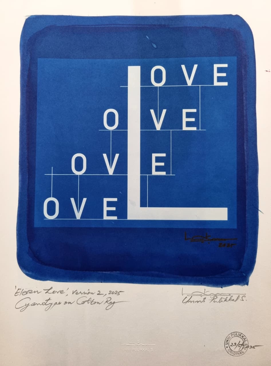 The journey of this creation began in 2024, when Pulikkal first conceptualised the design as part of his ongoing artistic inquiry into the visual and philosophical possibilities of love. The earliest manifestation appeared as a cyanotype print on archival paper in 2025, emphasizing the work’s connection to both tradition and experimentation in photography. Later that year, the design was transformed into its first large-scale, steel-based sculptural installation, permanently installed at the Art Museum of Love.